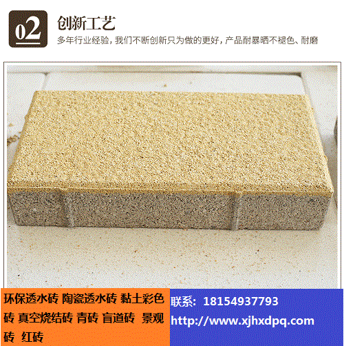 1: 透水性好:陶瓷透水磚采用合理的顆粒級配,可以迅速透過小到中雨的降水量。 2 :高強(qiáng)度:產(chǎn)品是經(jīng)過1200-1300℃高溫?zé)桑a(chǎn)品結(jié)合是由顆粒間物理成分熔融后冷卻形成的結(jié)合,強(qiáng)度非常高。通常大于45兆帕。 3:抗凍融性能好:由于顆粒間孔隙大,結(jié)合是燒結(jié)結(jié)合,對于北方的凍融有良好的抗性。很好的解決了水泥透水磚的透水好則抗凍融不過關(guān),抗凍融好則不透水的難題。 4:防滑性能好:陶瓷透水磚表面顆粒較粗,雨水滲透快,雨后和雪后不積水、不形成冰層,防滑效果較好。 5:良好的生態(tài)環(huán)保性能:可采用陶瓷廢料、下水道污泥顆粒、廢耐材、過火矸等工業(yè)廢料生產(chǎn),而且可重復(fù)利用。破碎后可再次燒制成磚。 6:可改善城市微氣候、阻滯城市洪水的形成:陶瓷透水磚的孔隙率在20-30%,本身有良好的蓄水能力,在夏天,雨后水吸滿滲透入地,滋養(yǎng)地氣、涵養(yǎng)水源、對樹木和花草提供水分;在陽光強(qiáng)烈時,水分蒸發(fā)可降低地表溫度,改善微氣候。如形成大面積鋪裝,可有效阻滯雨水,減少城市洪水形成的幾率。