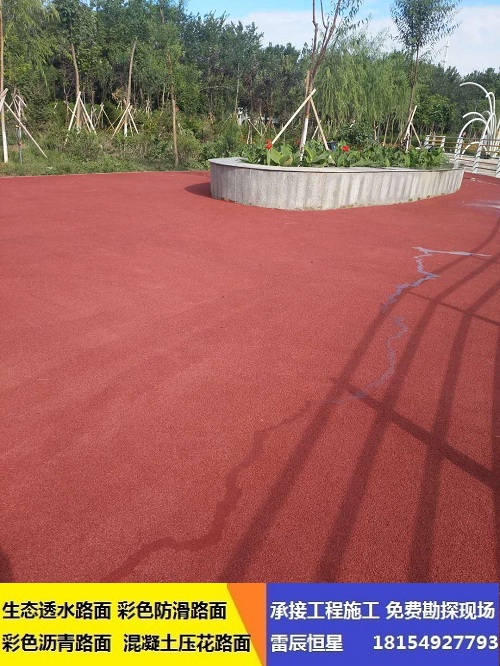 冷涂型彩色防滑路面材料的類型有丙烯酸型、環(huán)氧型,聚氨酯型等,其為液態(tài)。施工時(shí),無需大型設(shè)備,只需將基料與固化劑按比例混合后,用滾涂的方式涂鋪于路面,并添加防滑沙層,經(jīng)過化學(xué)交聯(lián)反應(yīng),快速固化成堅(jiān)韌的漆膜,形成彩色防滑路面。 施工簡單,快速簡便,目前已經(jīng)成為市場主要的選擇對(duì)象。其中聚氨酯型由于其綜合性能更有優(yōu)勢,所以在國內(nèi)目前的市場占有率*高。